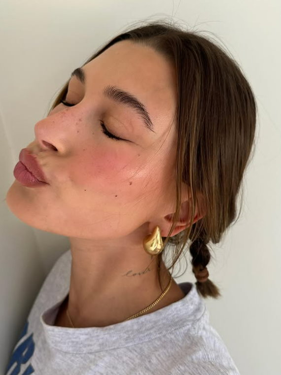 Hailey é fã de mini argolas douradas, usadas sozinhas ou em combinação. Essas peças trazem o toque certo de brilho discreto que deixa qualquer produção mais sofisticada. Elas aparecem tanto em eventos de gala quanto no street style da modelo.