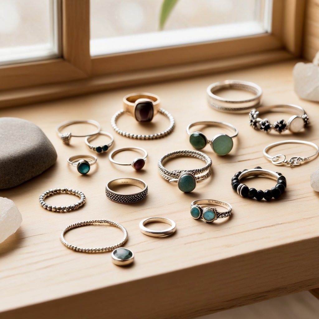 Para ambientes de trabalho, considere anéis finos ou brincos pequenos feitos com materiais reciclados.